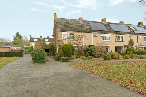 Het huis heeft aan de voorzijde een prettige voortuin met oprit die genoeg ruimte biedt om meerdere auto’s te parkeren. De aanwezige laadpaal kan overgenomen worden.